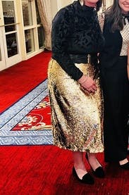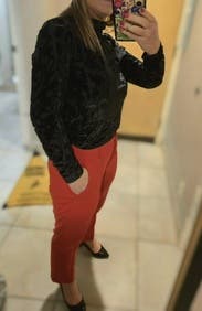 wore to a couple of christmas events - once with kick flares and once with a black skirt. the neck is a bit tight to get over your head but it's very flattering and also warm!