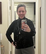 Classy burnout velvet top. I wore it with a lightweight cardigan. The mock neck drooped a bit.