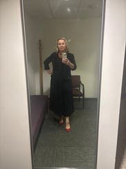 Wore this with a pair of blush earrings. Had lunch with a business contact whose fashion I idolize. When she complemented the dress I knew I had a win. I loved it. I may rent it again!