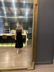This is a super flattering and forgiving dress. The longer length means it can be a bit more formal if you want it to be. I wore it to a work event and to Rosh Hashanah services and it would be great in my closet to wear again and again, just can't justify the price! Will probably rent again.