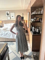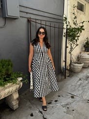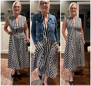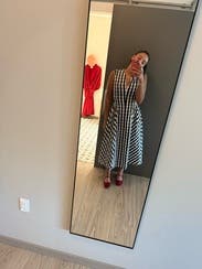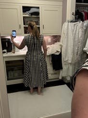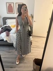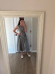 I rented this dress for work and ended up wearing it multiple times. The classic black-and-white check pattern is beautiful and timeless, while the silhouette, pockets, and comfortable fabric made it so easy to wear. It fits like a glove but is forgiving in the midsection, which I appreciated. One thing to note is the neckline; if you have a larger bust, it might be a bit too revealing. Overall, a great and versatile piece for the office!
