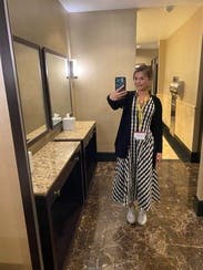 This dress has a beautiful puffy skirt! I wore it with a blazer to make it more professional for a work visit to my state capitol.