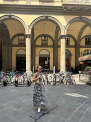 This is my third time renting this dress. The 8 was too small, but the 10 fit perfectly so you should rent a size up. It is elegant can be dressed up and down and perfect for work with too many compliments to count. It’s lightweight and perfect for packing in a small suitcase.