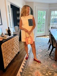 Tanya Taylor’s Crawford Dress offers a minimalist canvas with a bold contrast pocket, ideal for warm-weather outings. Pair it with white sneakers and a crossbody bag for an effortlessly cool daytime look.