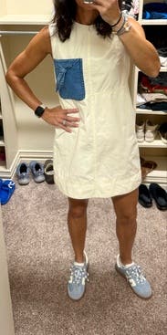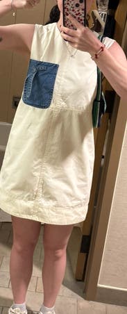 Pocket detail makes this dress more interesting. It fit mostly well, just a little snug in the arm holes/chest/neck. I wouldn’t have sized up though because it likely would have looked boxier.