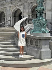 The dress was cute but throughout the day it wrinkled a lot. I am also pretty short (5’3’’) and the dress felt a little short.