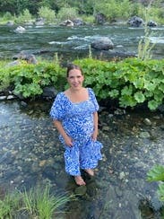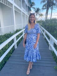 Beautiful, flattering dress and a tie in the back made it perfect to fit a baby bump! Loved it,