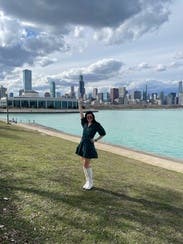 Cool cut and colors, I couldn't tell if the dark color was black or blue so I went with brown boots similar to model