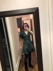 Such a fun dress to wear for a holiday party. Very comfortable and flattering! I'm still trying to figure out my sizing. This dress was slightly large in the waste for me but a belt made it perfect. Will order a smaller size next time.