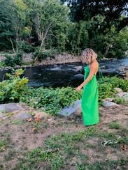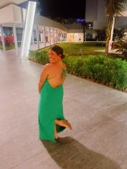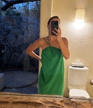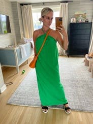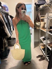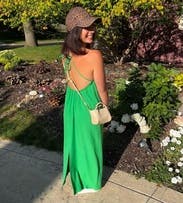 wore this to a golf tournament. very flow-y with a beautiful open back! i loved the green color!