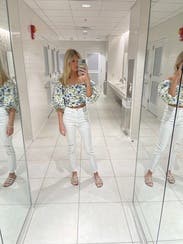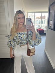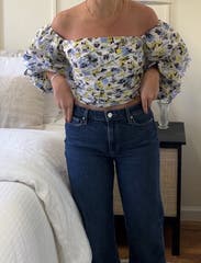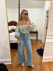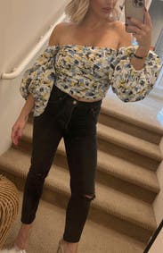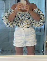 i'm obsessed with this top! it fits SO well, the sleeves stay puffy and the print is perfect for spring. i wore it with the sleeves off the shoulder and on the shoulder and both worked!