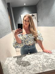 Such a cute top! The fit was perfect and I got so many compliments! I wore it twice. Once to a family bbq and once out to girls night. One of My favorites for sure will rent again!