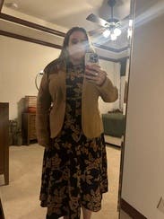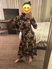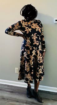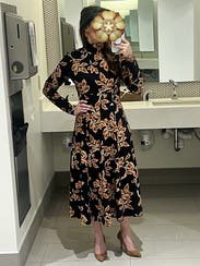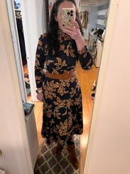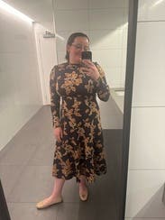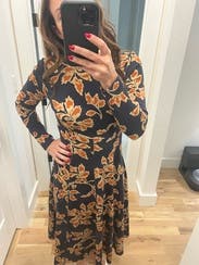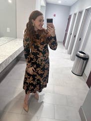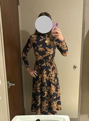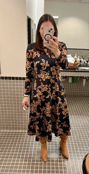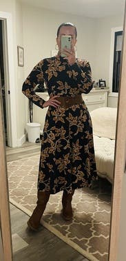 This dress is a TTS fall stunner. It’s heavy, so paired with boots, it could definitely work on a colder fall day. I had people stop me on campus to compliment this dress. It’s so versatile and comfortable!