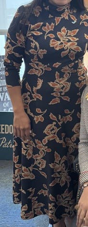 Beautiful dress! Wore to multiple conferences. Professional, great length, comfortable. Considered buying.