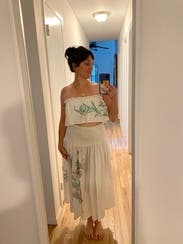 This was huge paired with the skirt on my 5 foot frame. Definitely was not a two piece look! The skirt and top overlapped. It’s very cute in the photos but not made for petite girls.