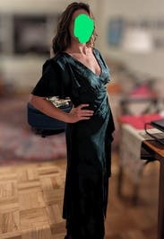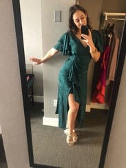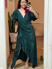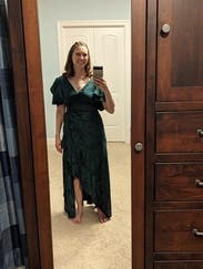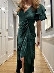 After a lot of wearing red, I was excited to find a festive Evergreen green color dress for the holiday. It was so comfortable and great for dancing. The dress has great movement, cut and material. Love the sleeves and not too low cut neckline.