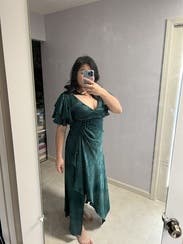 I was unsure whether this dress would work for a cocktail wedding I was attending, but out of the 4 options I rented it was the clear winner. I was mostly concerned about the big sleeves but I found them hardly noticeable once the dress was on. The color was striking and it fit beautifully. It was perfect to dance the night away in. Highly recommend also for women with larger chest as I felt completely comfortable.