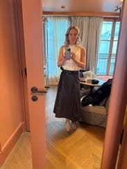 Rent this skirt!! It is amazing and you can wear it anywhere. Very comfortable and high quality. I’ve gotten so many compliments. I wish I could keep it but retail is too pricey! I’m obsessed.