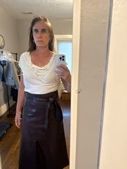 I loved this skirt. It fit great and looked amazing. The color is rich and it feels expensive. Only downside was the squeaking when you walk...