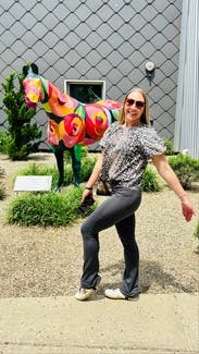 Wore with grey ankle denim. Comfortable and fun puff sleeve. On trend animal print. Complements.