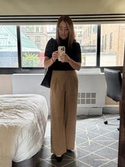 Loved these pants! Lightweight (but not screaming “summer”) fabric that hung well and flowed beautifully. Good length for low/mid heel and even switched out for sneakers at the airport. Ordered my TTS but could have possibly sized down.