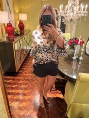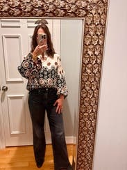 Get the matching skirt! The set is a showstopper, so many compliments, forgot to take a picture. I love this blouse — the print is bold but elegant, and the flowy sleeves make it feel special while still easy to wear. I feel like it runs a bit big, a small would have been a better fit.