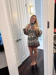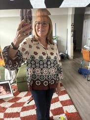I had some hesitations about the pattern -- I guess because it reminded me of patterns that my grandmother used to wear! I wondered if it would make me look older than I am. I liked it a lot better on than on the hanger -- fit beautifully, comfortable, easy to wear.