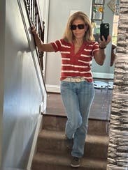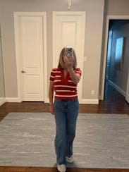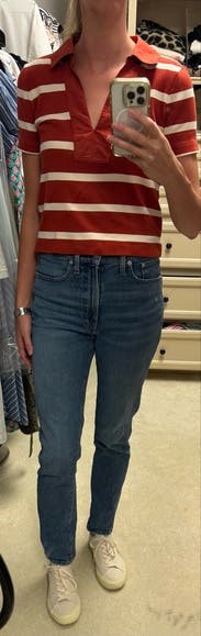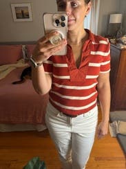 I love stripes! I saw this top and instantly gravitated towards it. I loved the feel of this top. It was heavier but not too heavy for thise transitional summer days in the NYC area. The fit was true to size. No complaints.