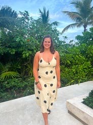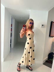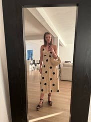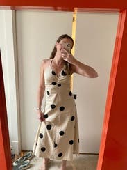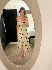 A fun, versatile dress. The fit I didn’t find the most flattering but the polka dots were fun and this was easy to style for multiple wears. I wore with a top for work. See more of my rentals on IG @itsminefornow