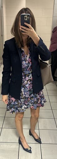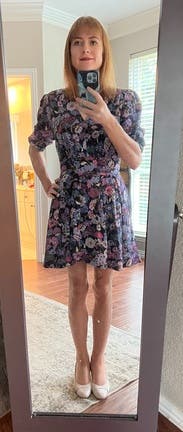 I rented this dress for work and really liked it! (My boyfriend was especially a fan!) Pros: beautiful pattern, pockets, great option for transitional spring weather Cons: a little short for work, the sleeves bunch up easily