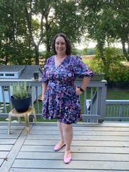 Really loved the colors and the fit is flattering. I’m a true 6 and that size was a little big on me. I think I could’ve sized down to a 4 but the 6 still looked ok. I have a larger chest and loved that I could wear a real bra under this with little to no cleavage showing.