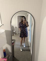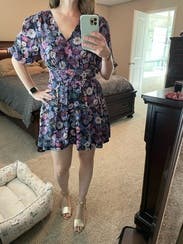Loved this one, considered purchasing! Loved the pattern. Worn for an evening wedding couple shower. Probably too short for work for me but great to wear out!