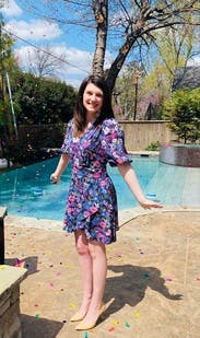 I rented this dress for a rehearsal dinner and it was perfect! It is so comfortable and fits true to size. There are also pockets! The material is a bit silky and the print is very flattering. I definitely would rent again, it was one of my favorite rentals.