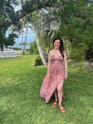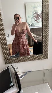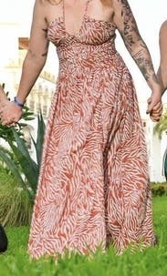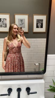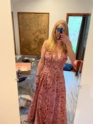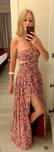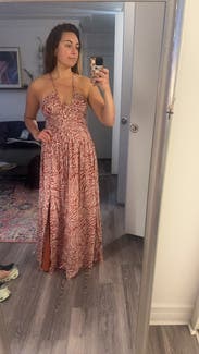 This dress is so good on. I can’t wait to rent it again. I tied the top differently than the model but looks like there’s multiple ways to wear. Super lightweight and comfortable. Can easily dress up or down