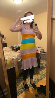 I loved the bright colors and since I was pregnant but unsure if I would be showing yet this was perfect because it is a stretchy material. (turns out I'm the "just looks chubby", not the "cute bump" type of pregnant but this worked great for that too). I got lots of compliments!