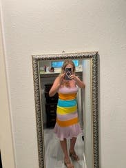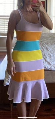 I was pleasantly surprised by how great this dress looked in real life. Fun colors, good quality fabric and accentuated my curves. Would rent again!
