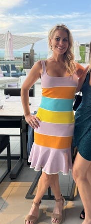 Although the horizontal stripes weren’t the most flattering, I had so much fun wearing this dress to the tennis open. It’s well made, thicker fabric, and the colors were fun!