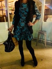 I really liked this with black tights and black booties. I'm a 16/18, and needed the 18 for sure-no stretch. Very fun and cute!