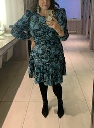 Would not rent again, unless a larger size was available. Loved the print! Wish I could have loved the dress. This dress is short for tall girls. I barely got away with wearing this dress. Wore tights for a fall/winter vibe. Tight in the chest area. No stretch at all. Tummy area is really tight. Don't go have a big meal like me, or else you can't wait to run home to remove. Not solo zipper friendly. You'll need assistance getting this baby on.
