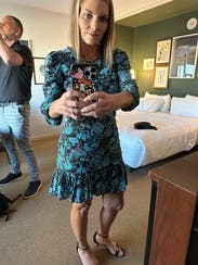 This dress is not my favorite. I didn't realize that the entire dress, minus the bottom ruffle, is like a ruched tube that you pull down over your hips. I was adjusting it all evening and felt like it accentuated my tummy.