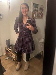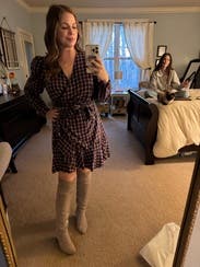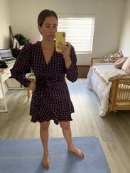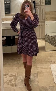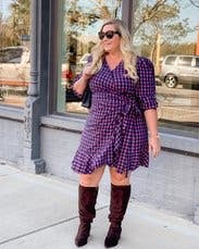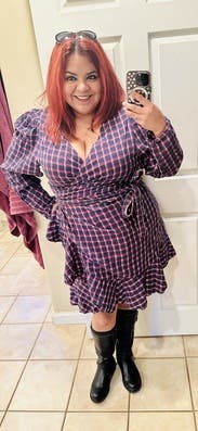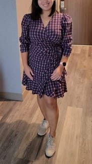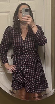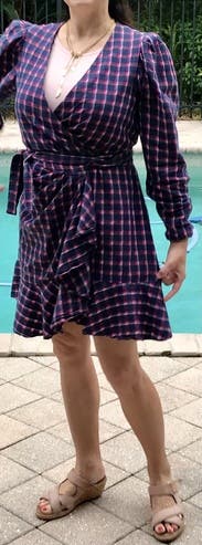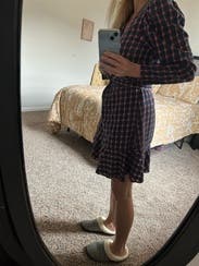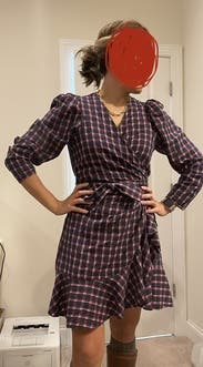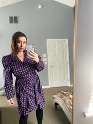 Rented this dress for Christmas tea and it was perfect! Love that it is an update on the classic plaid (pink/purple rather than red/green) and added interest with the puff sleeve. As a busty girl, wrap dresses can be problematic- gapping or the dress not closing all of the way- but the size 8 was perfect and I never had to worry about falling out. Would absolutely rent again!