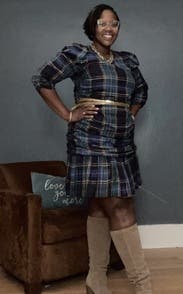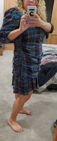I think this would be fun for the holidays. I love plaid so I got this just for regular work. I wanted to love it more but the ruching around the mid section was less flattering and more thickening. I think with the drop waist it would look better on tall girlies. (Which I'm not lol)