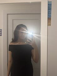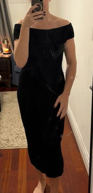 Loved this dress! Simple, chic, and extremely flattering even with a growing bump. The ribbed fabric hugs in the right places without feeling restrictive, and the off-shoulder neckline makes it feel elevated without trying too hard. I wore it with gold heels and minimal jewelry, and it was an effortless but polished look. Length hits mid-calf, which worked well for heels. Very versatile—you could wear this to a wedding, dinner, or even to dress up a work event. Would definitely rent again.