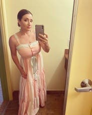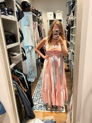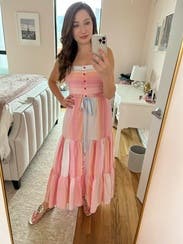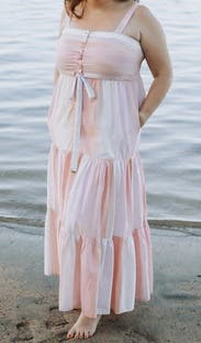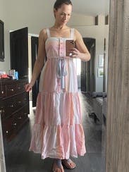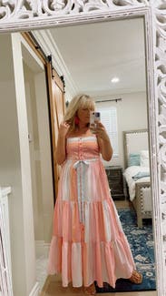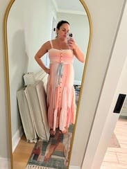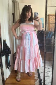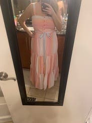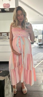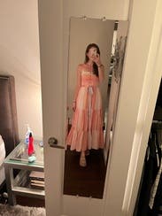I got this to wear to my pink and orange beach, themed baby shower. I was SO excited for this dress and loved the look of it and the fabric but unfortunately the fit just wasn’t right. The straps kept loosening and sliding off my shoulders, and the dress would ride up into my armpits. I didn’t end up wearing it 😔