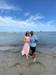 I am currently 182 pounds/ 36c and rented size 14. I was nervous that it was gonna be too big but it actually fit great. It was flowy and comfortable. I got so many compliments on it and was perfect for my beach barbecue baby shower. Would definitely recommend.