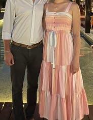 This was a great dress I wore to the rehearsal dinner for a wedding. Love the colors! The only thing is the back straps won’t lay flat, they kept getting twisted.