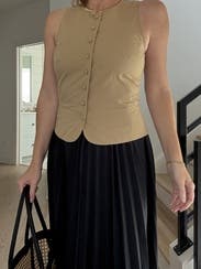 Absolutely loved this for work and an evening work event. So cute and on trend with the vest as the top. It was a little tight in the just, but doable. The buttons are not functional which helped with the busy being tighter. So many compliments!