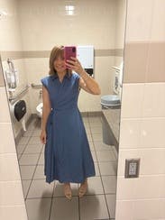 I love a wrap dress and this fit well, super comfortable to wear at a conference all day, but the tie kept coming undone