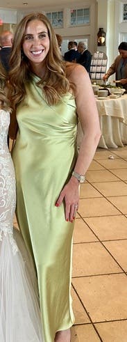 Wore this dress to a wedding and absolutely loved it. Beautiful color and great quality. I ended up sizing down from my usual size.