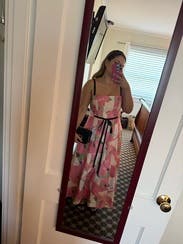 I ordered this as a big maybe bc it didn’t really stand out to me online but then ended up lovingggg it on. It was so comfortable but fun and I got so many compliments. A great dress for a spring / summer wedding wknd.